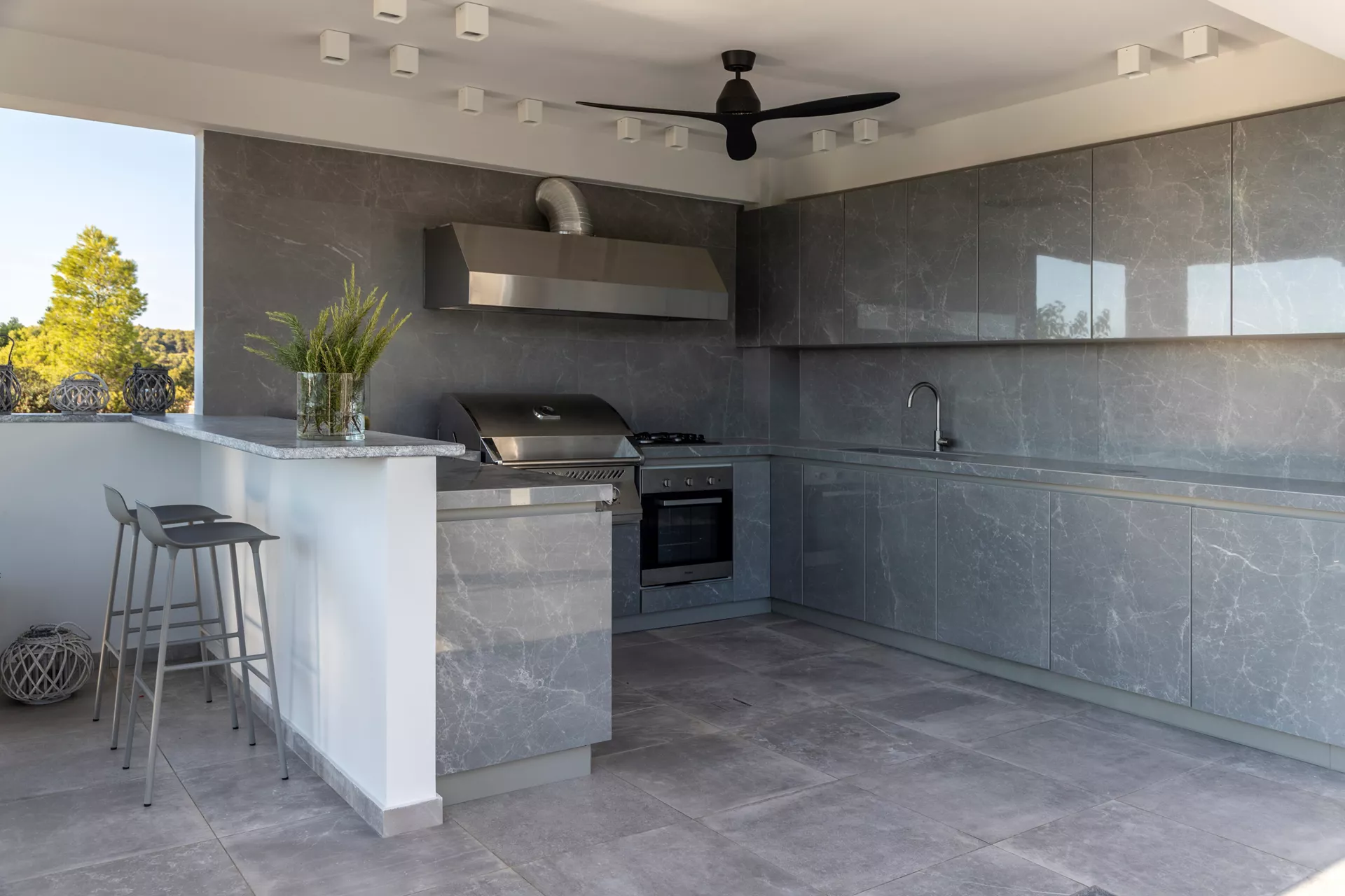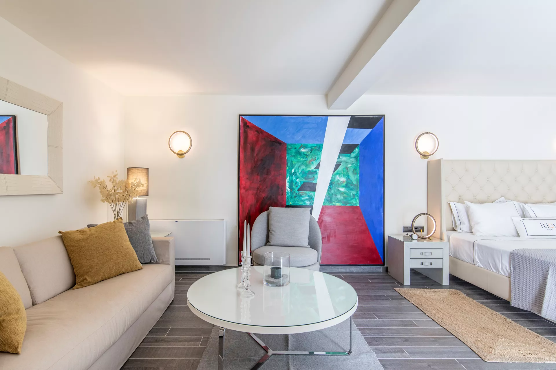 Μπαίνοντας στη βίλα, θα βρεθείτε σε έναν ανοιχτό χώρο που κόβει την ανάσα που στεγάζει το σαλόνι με ένα ενεργειακό τζάκι, μια τραπεζαρία οκτώ ατόμων, την κύρια κουζίνα και ένα μπάνιο. Σε αυτό το επίπεδο βρίσκεται και ένα γραφείο με εργονομικό καναπέ που μετατρέπεται σε διπλό κρεβάτι, προσφέροντας έναν ευέλικτο χώρο που μπορεί να φιλοξενήσει επιπλέον επισκέπτες.