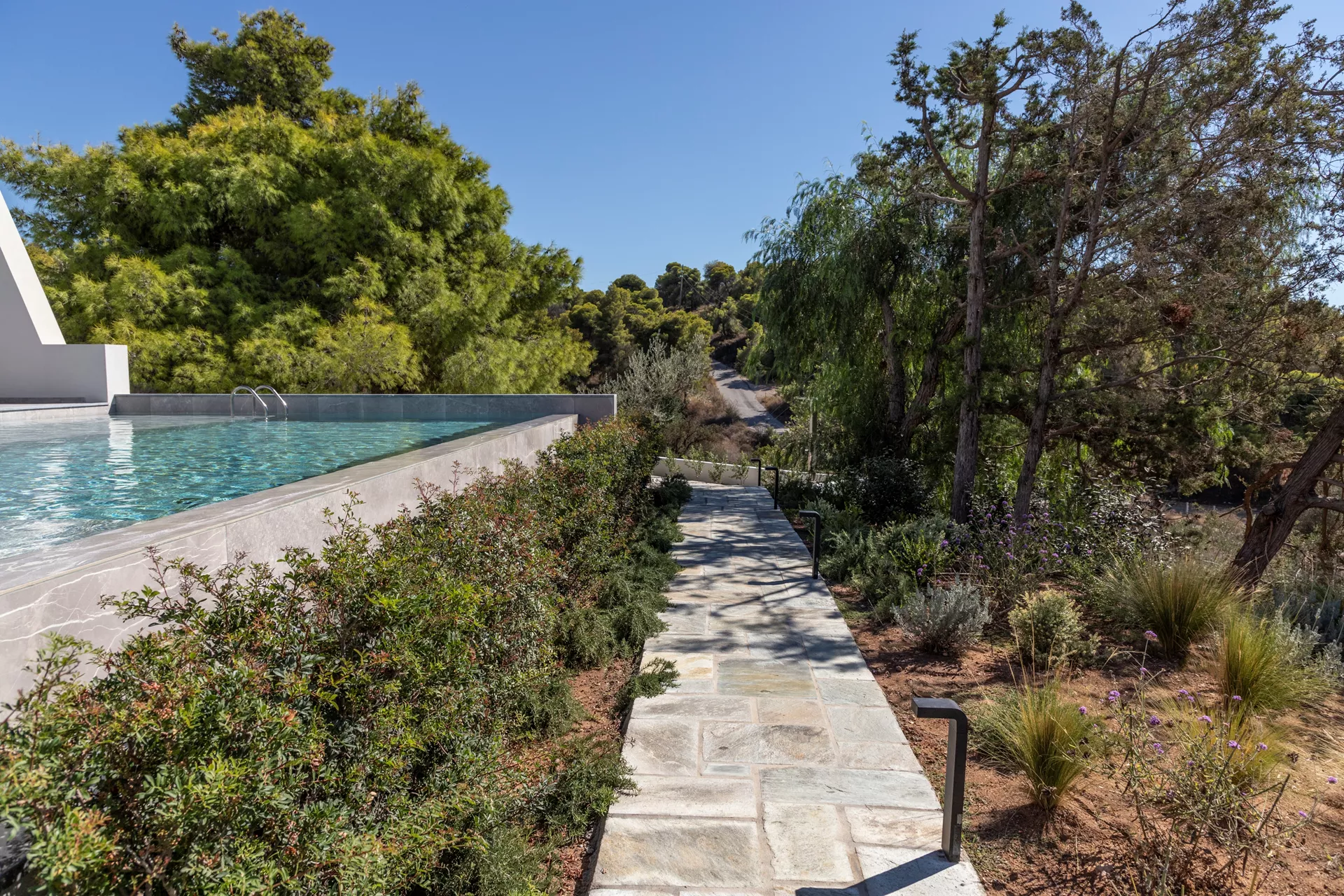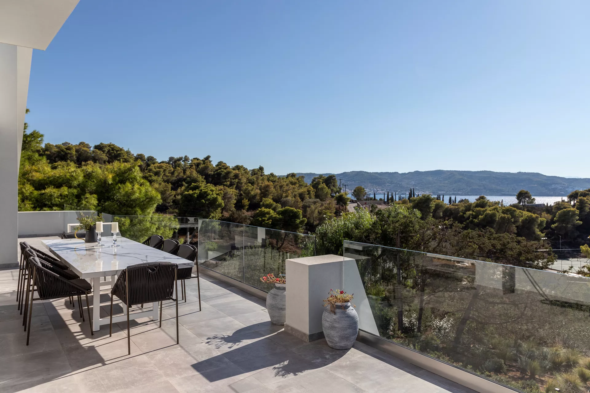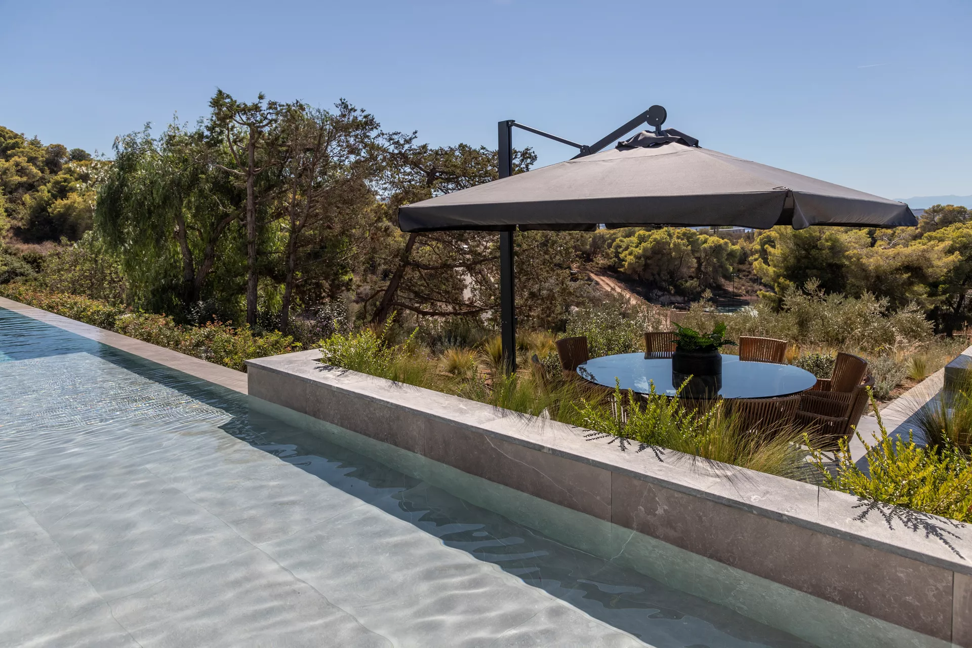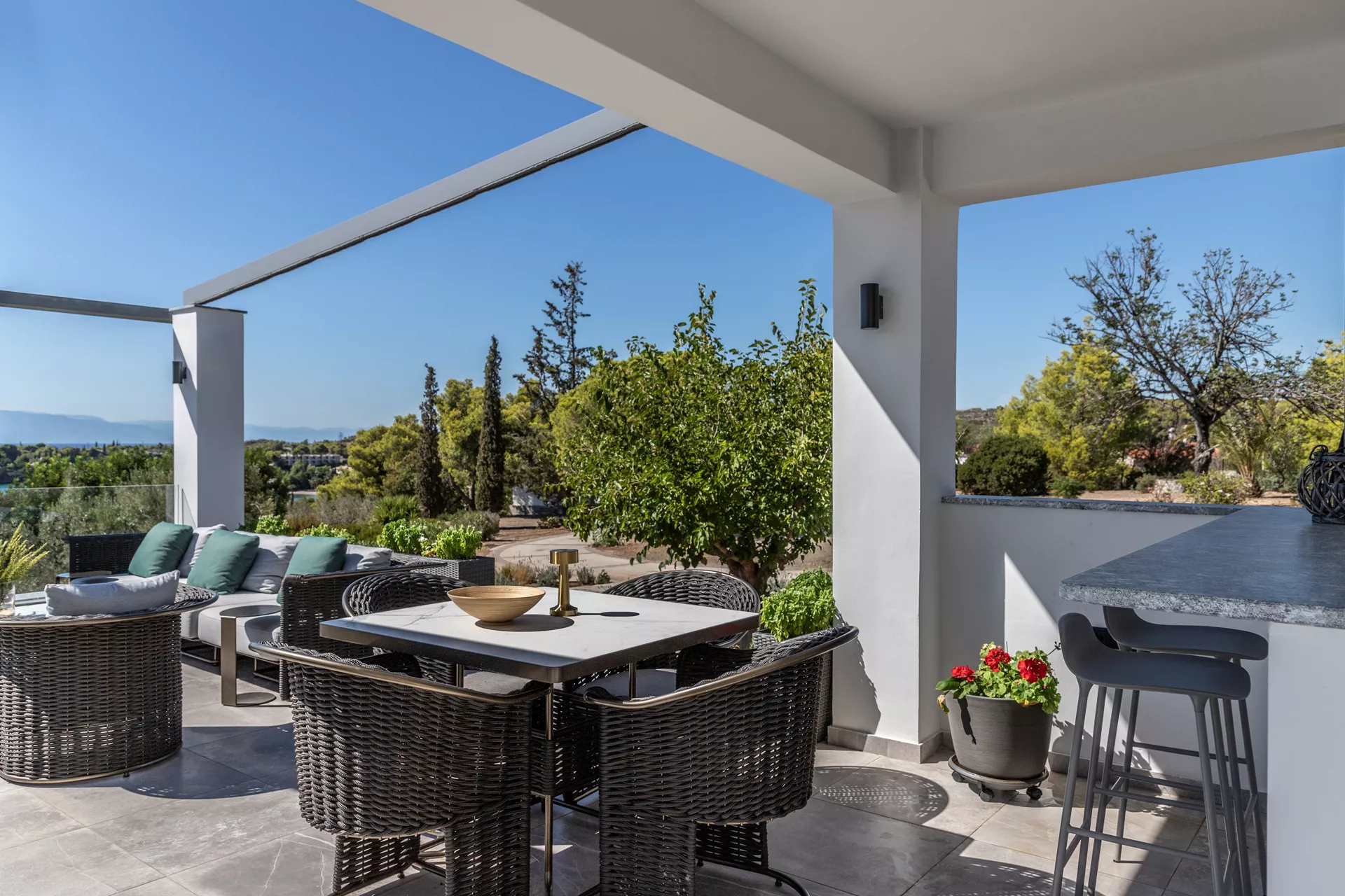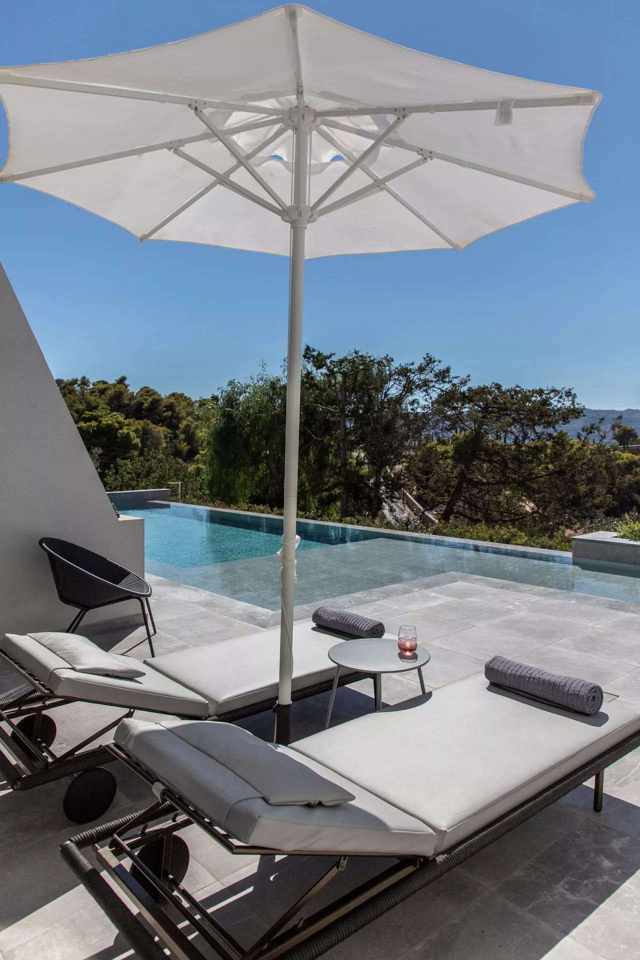 Κατεβαίνοντας στο δεύτερο επίπεδο, θα ανακαλύψετε τέσσερα πολυτελή υπνοδωμάτια, καθένα από τα οποία παρέχει άμεση πρόσβαση στην πισίνα. Τρία μπάνια, δύο από τα οποία είναι en suite, βρίσκονται επίσης σε αυτό το επίπεδο, μαζί με μια μικρή κουζίνα ιδανική για την προετοιμασία σνακ, παιδικών γευμάτων ή ενός δροσιστικού καφέ ή ποτού.