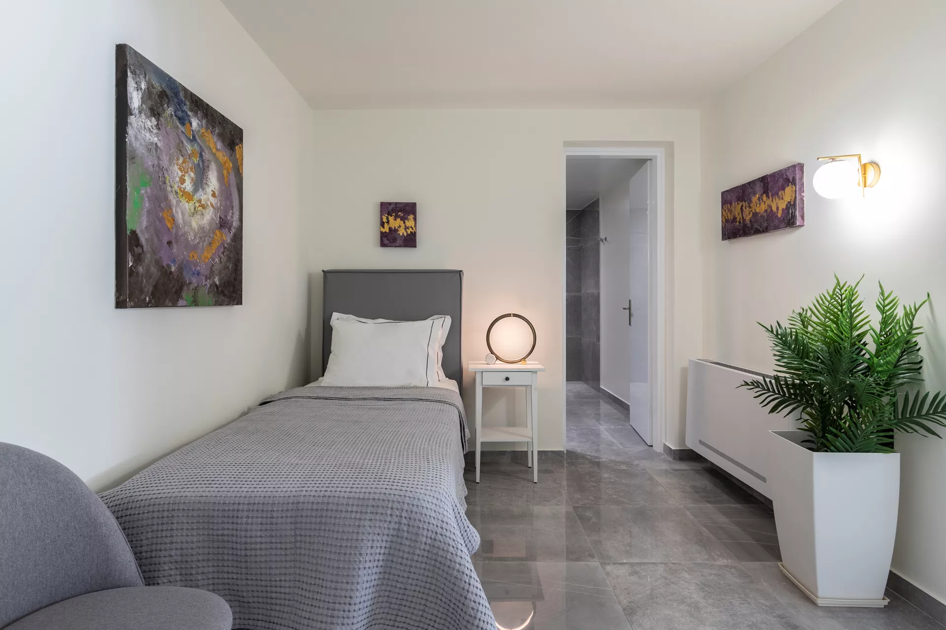 Το τρίτο επίπεδο φιλοξενεί δύο ανεξάρτητους και αυτόνομους ξενώνες. Το ένα είναι Junior Hotel Suite με διπλό κρεβάτι, μπάνιο, σαλόνι-τραπεζαρία και μικρή κουζίνα, με άμεση πρόσβαση στον κήπο. Η άλλη είναι μια Executive σουίτα δύο χώρων που διαθέτει υπνοδωμάτιο, μπάνιο, κουζίνα και σαλόνι-τραπεζαρία, που συνδέεται με ένα έβδομο μονόκλινο υπνοδωμάτιο με μπάνιο, ιδανικό για μέλη του προσωπικού ή μπέιμπι σίτερ.