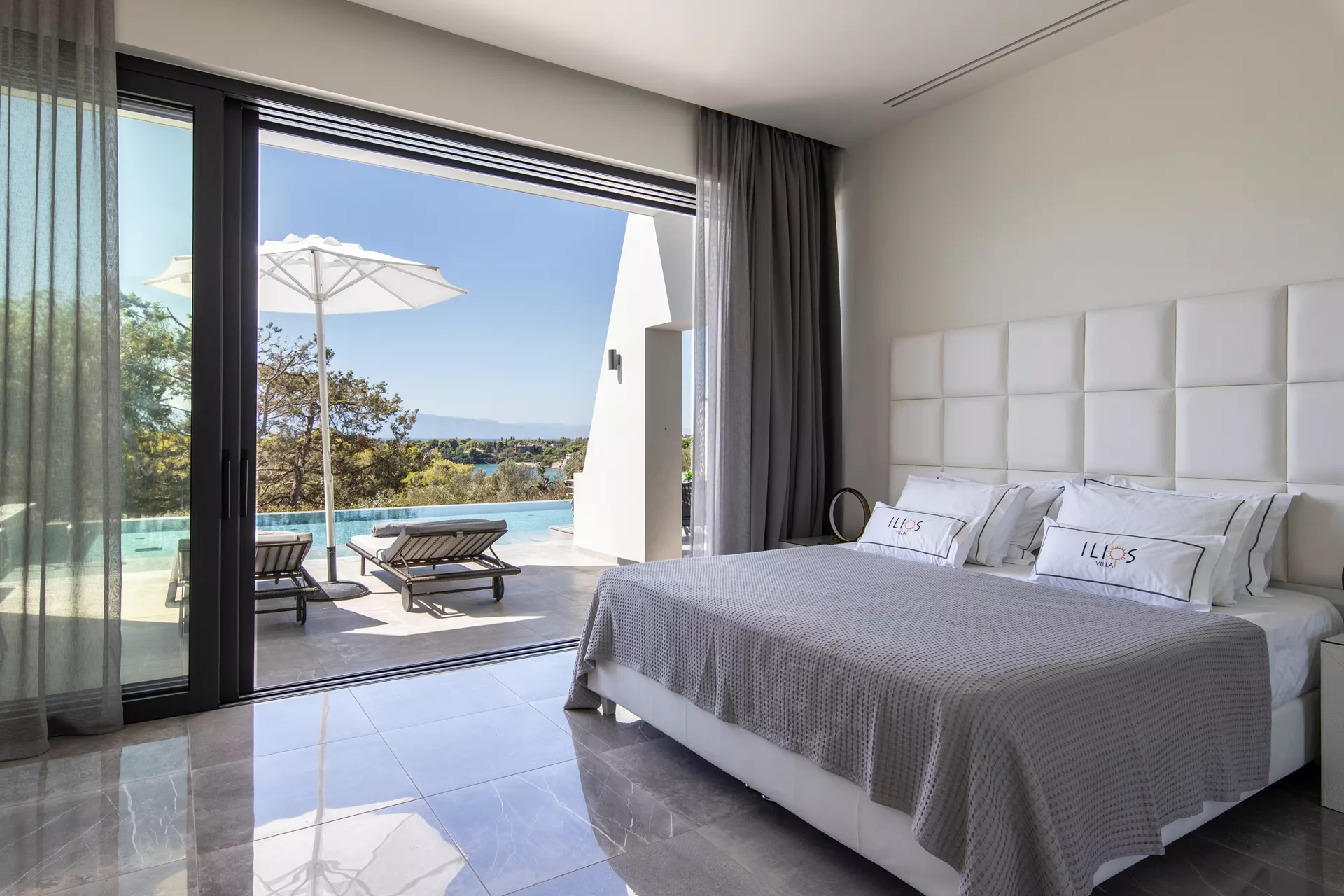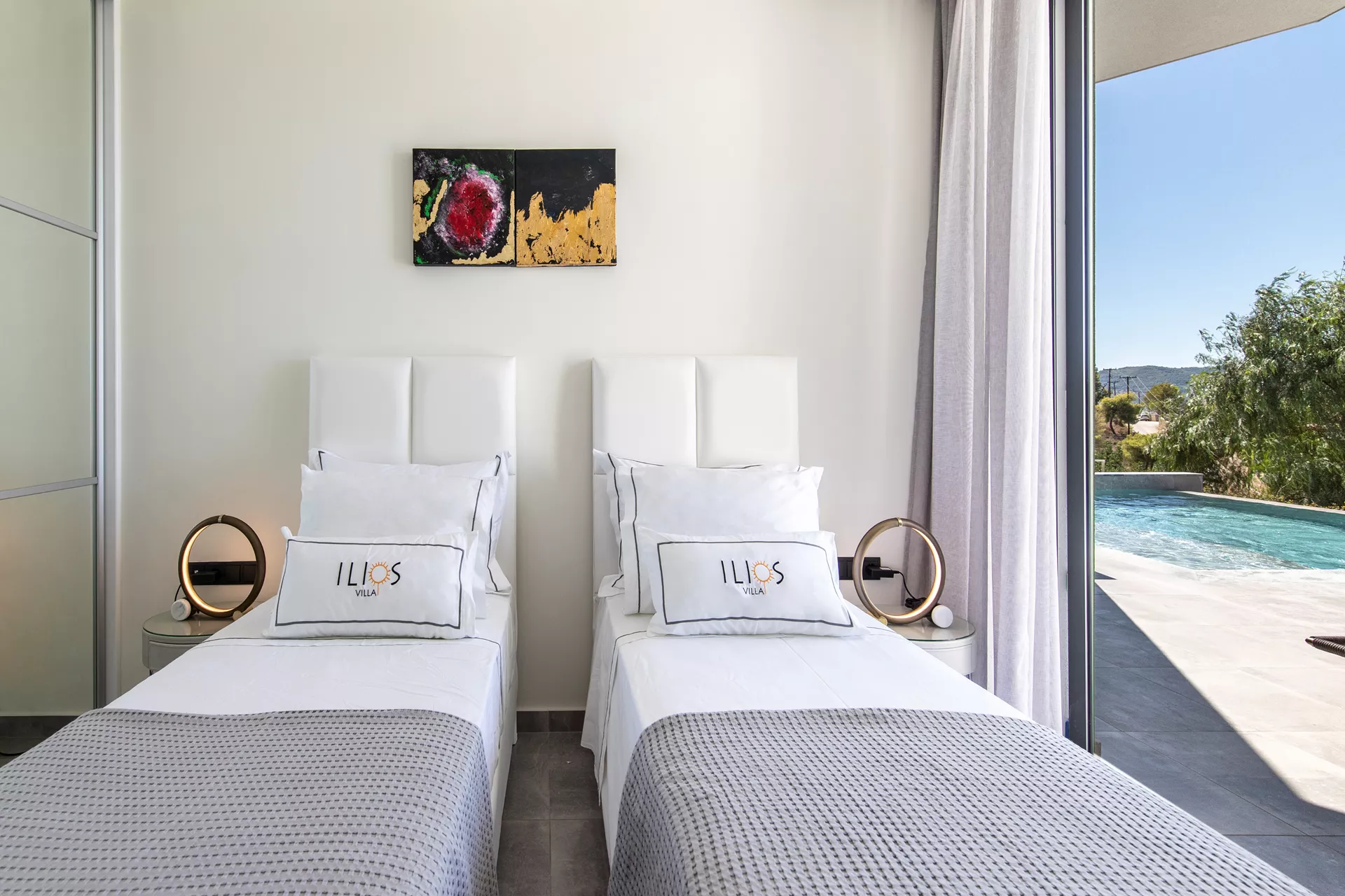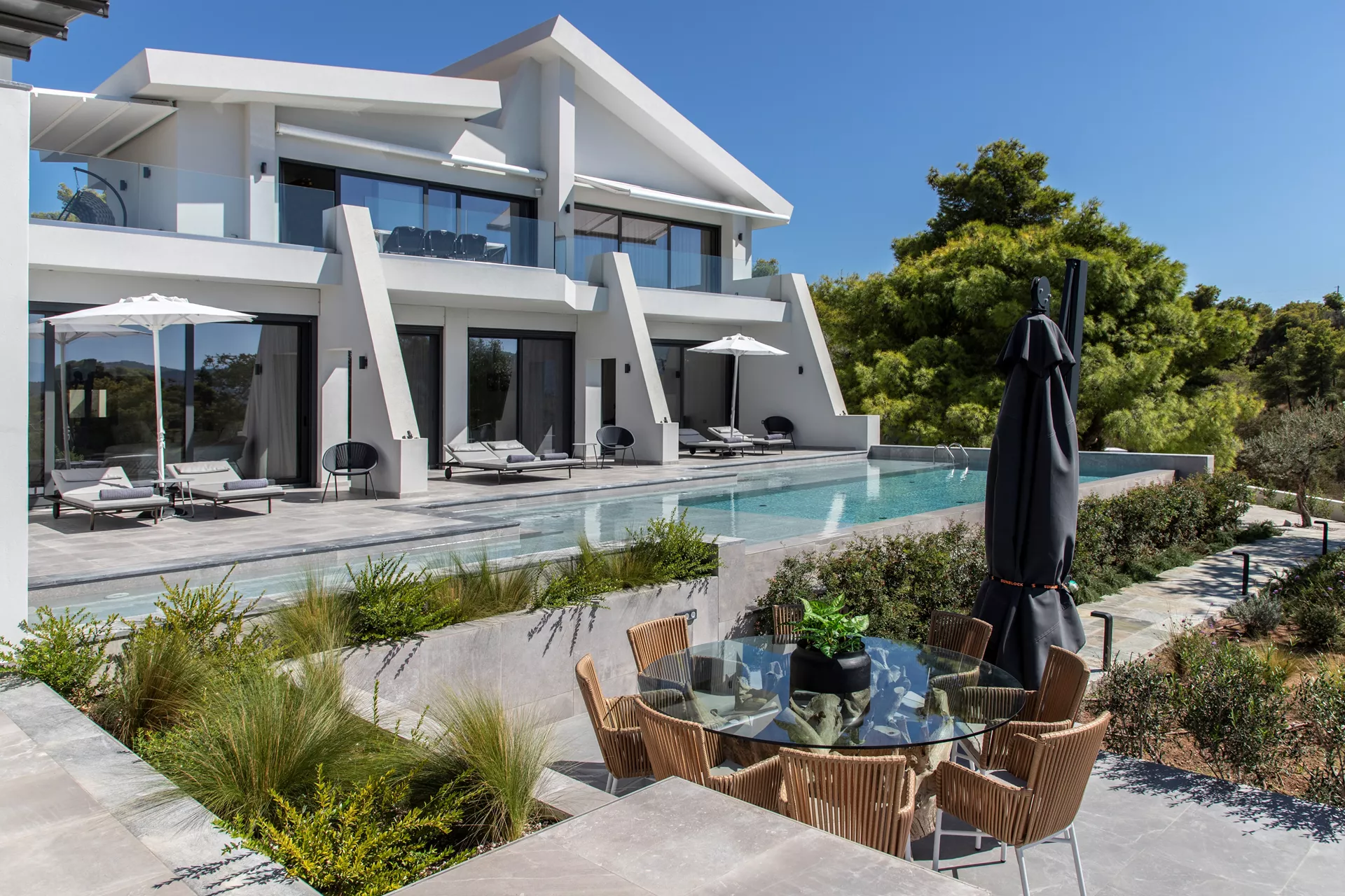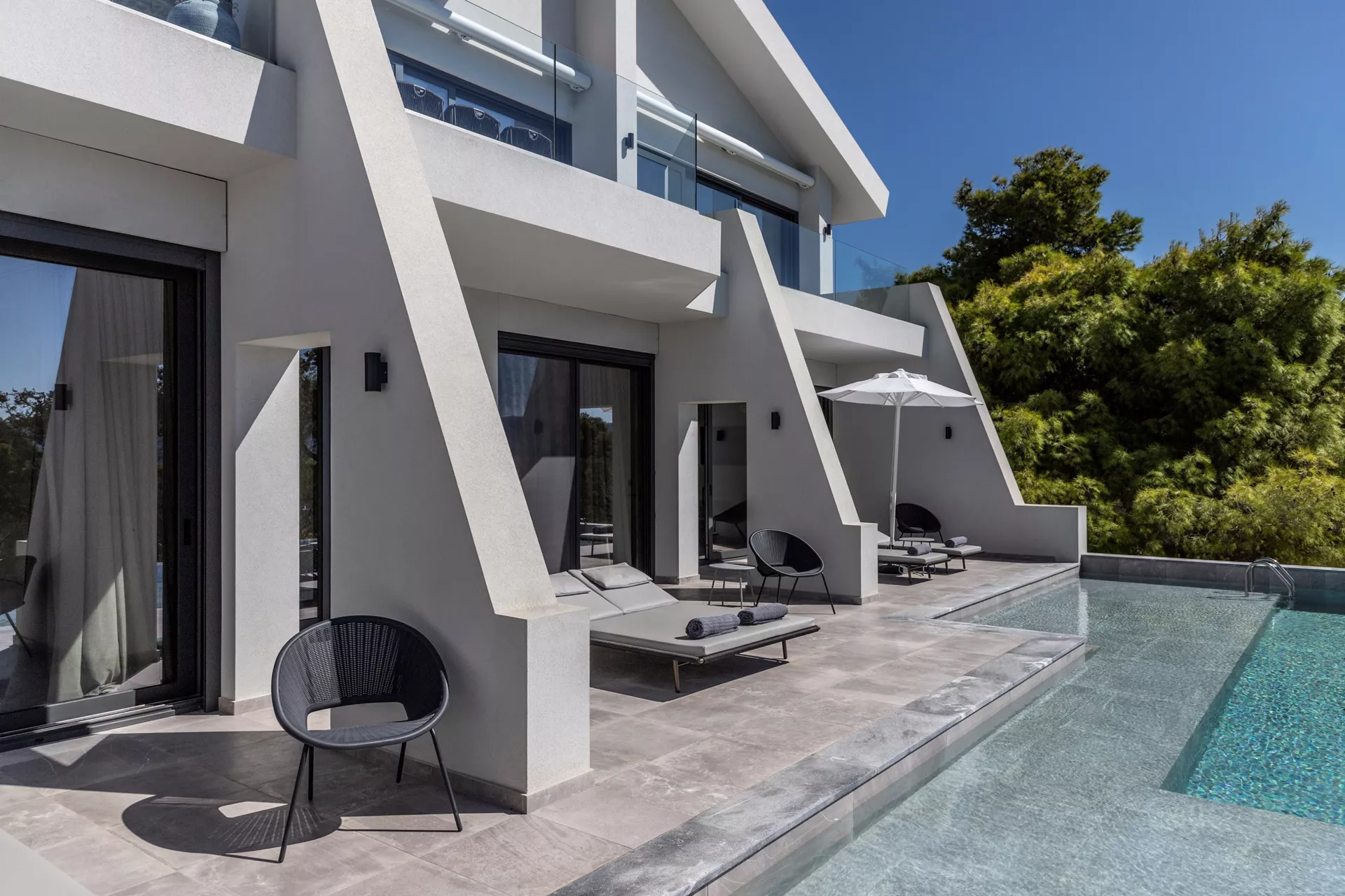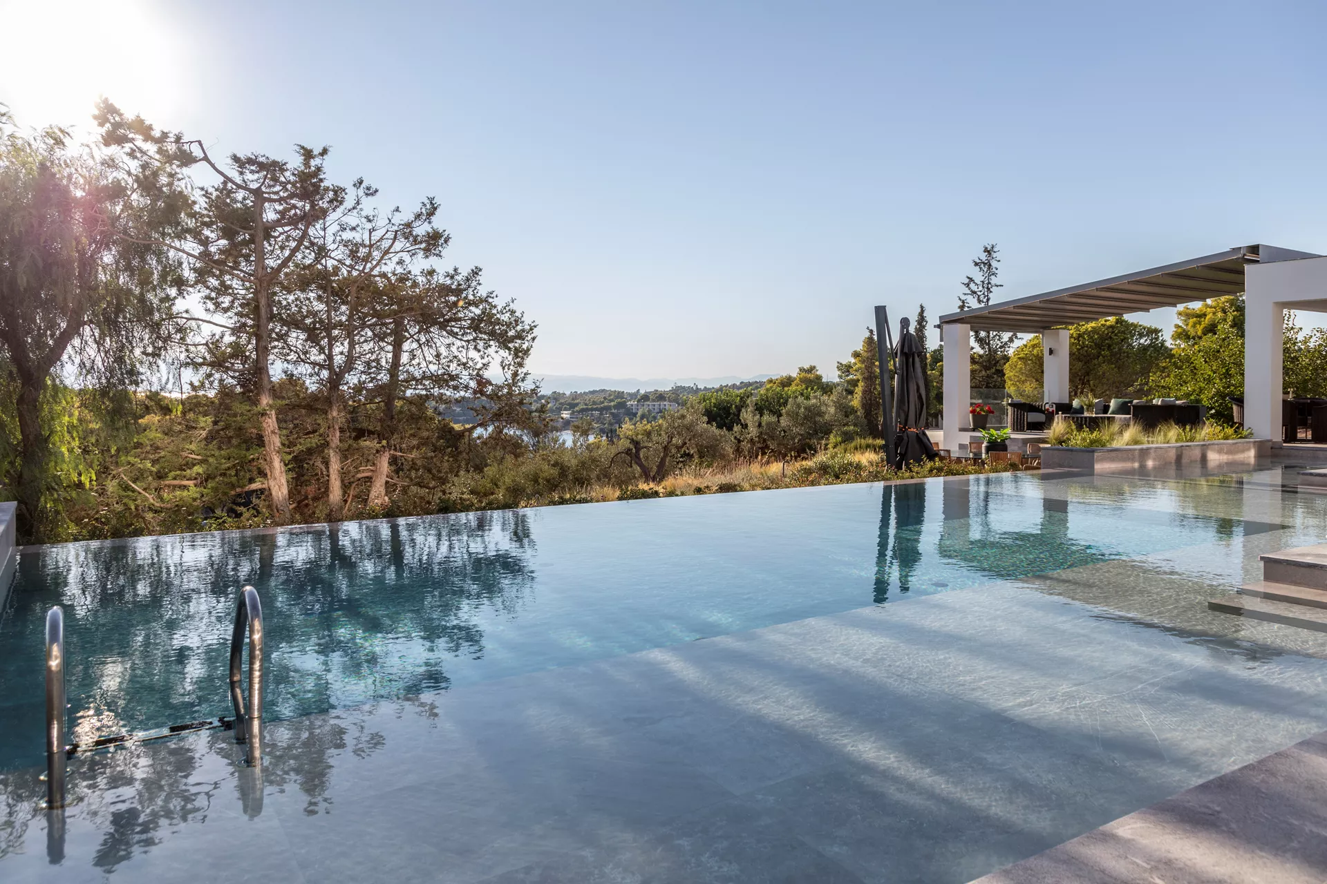 Descending to the second level, you will discover four luxurious bedrooms, each providing direct access to the swimming pool. Three bathrooms, two of which are en suite, are also found on this level, along with a small kitchen perfect for preparing snacks, children's meals, or a refreshing coffee or drink.
